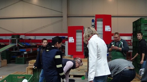 Uczestnicy projektu z dużym zainteresowaniem przyglądali się etapom procesu mycia, sortowania, pakowania jabłek i gruszek, a nowoczesne maszyny procesu technologicznego zainteresowały najbardziej męską część wycieczki.