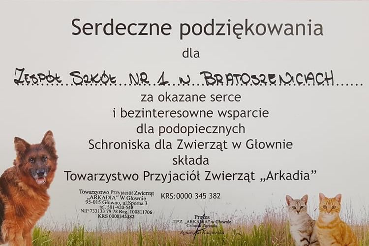 Nasza młodzież jak zwykle nie zawiodła! W akcji prowadzonej przez Koło Wolontariatu udało nam się zebrać około 200 kg karmy dla podopiecznych schroniska dla zwierząt w Głownie. Oprócz karmy w paczkach znajdowały się również: koce, zabawki oraz inne akcesoria potrzebne dla zwierząt zimą. Za udział w akcji serdecznie dziękujemy i zapraszamy do przyszłorocznej edycji. Nasza grupa wolontariatu zdecydowała się również na adopcję pięknego psiaka o imieniu Rudzik. Piesek ze względu na swoje nadmierne upodobanie do kotów ma niewielkie szanse na adopcję, dlatego też będziemy go odwiedzać i zajmować się nim w każdej wolnej chwili. Jeśli ktoś miałby ochotę przyłączyć się do wyjazdów do Rudzika- zapraszamy gorąco.