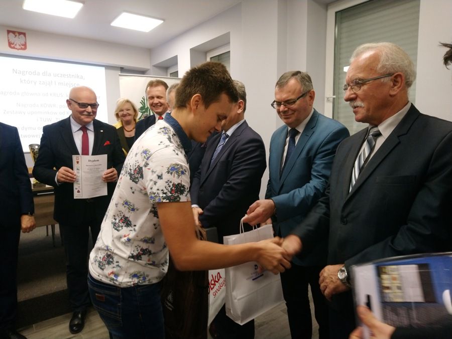 Wreszcie przed godziną 14.00 ogłoszenie wyników. Organizatorzy zaczynają odczytywanie pozycji od miejsca 10. Adrenalina rośnie!!! Z każdym kolejnym uczestnikiem rośnie szansa Dariusza na podium w konkursie. Aż wreszcie stało się! Nasz reprezentant po fantastycznych odpowiedziach w II etapie zajął bardzo wysokie II miejsce. Oprócz dyplomu zdobył również cenne nagrody rzeczowe.