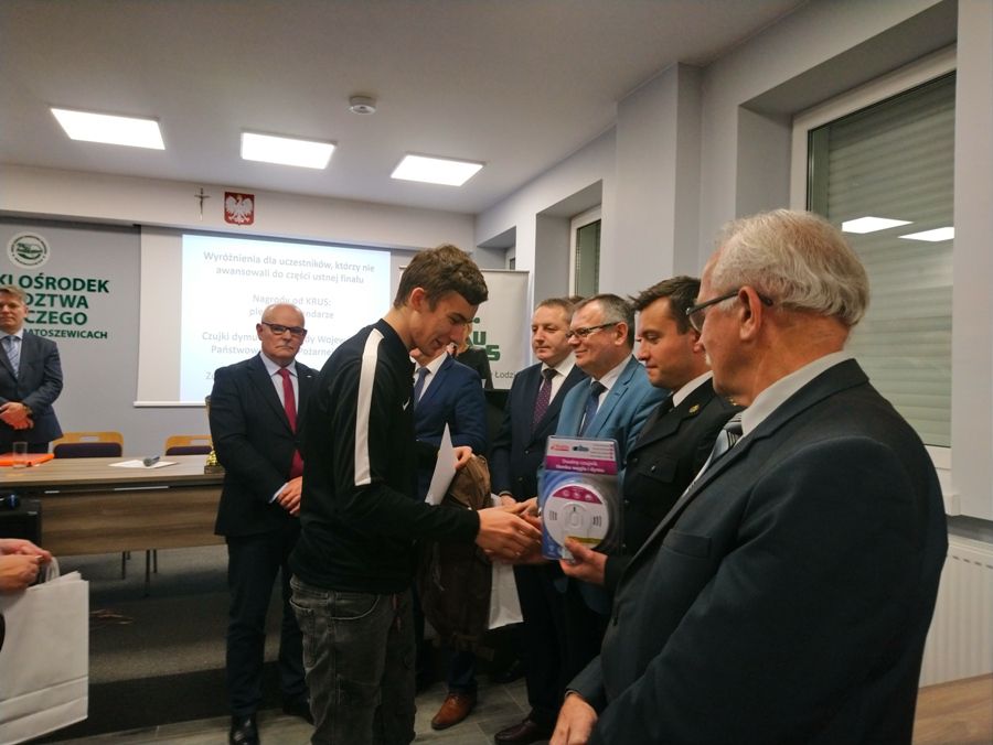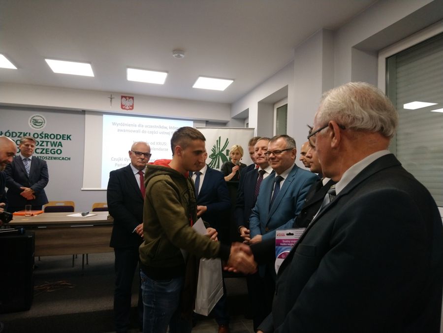 Dzień 28 listopada, godzina 10.00. W Łódzkim Ośrodku Doradztwa Rolniczego w Bratoszewicach rozpoczyna się I etap finału konkursu „Wiedzy o BHP w rolnictwie”. Wśród 30 uczestników jest również 3 naszych reprezentantów: Cyprian Łuczak z klasy IVTR , Dariusz Gabrysiak z klasy IVTR oraz debiutujący na tej imprezie Michał Pietrzak z klasy IpA. Sprawa wydaje się prosta: jak najszybciej dobrze odpowiedzieć na 30 pytań testowych i przejść do II etapu – tak myśli każdy uczestnik finału. Jednak miejsce w ścisłym finale jest zarezerwowane tylko dla 10 najlepszych uczestników etapu pierwszego. Po sprawdzeniu przez komisję testów wreszcie są wyniki!!! Chwila nerwowego oczekiwania i już wiemy, że nasz reprezentant Dariusz Gabrysiak z wynikiem 18 punktów awansował z 10 miejsca do II etapu. Tu już nie ma miejsca na fart. Liczy się tylko wiedza i opanowanie, gdyż każdy musi odpowiedzieć przed komisją na 3 pytania wylosowane wcześniej. Na każde z pytań ma 3 minuty.