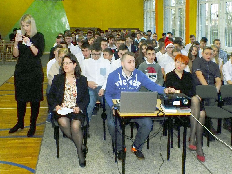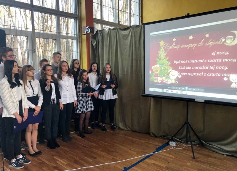 Klasy IV LM i I TŻ przedstawiły program słowno- muzyczny, w trakcie którego przybliżyli znaczenie świątecznych tradycji oraz zachęcili całą społeczność szkolną do wspólnego śpiewania kolęd. Temat przedstawienia sprawił, że klimat zbliżających się świąt Bożego Narodzenia ogarnął wszystkich zgromadzonych.