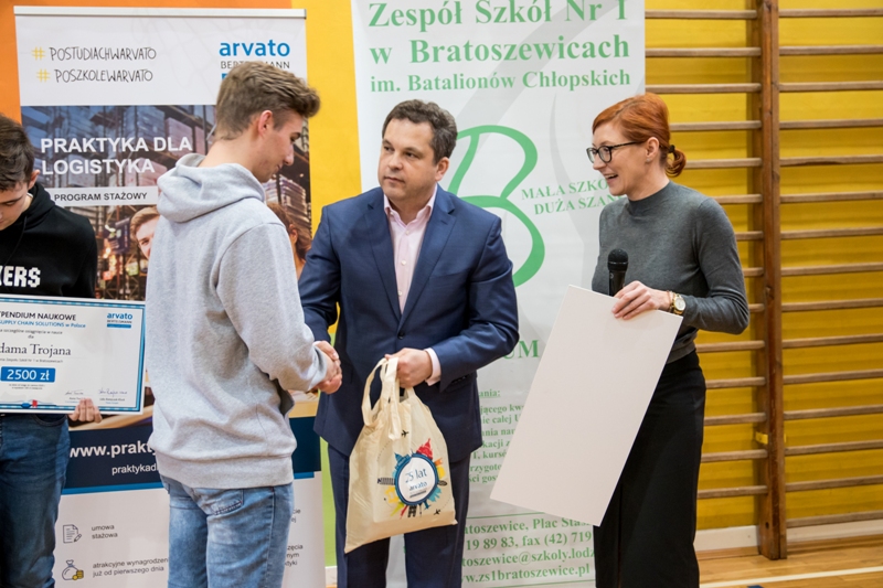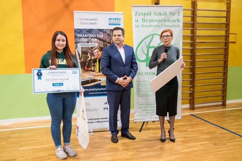 Uroczyste wręczenie stypendiów miało miejsce w dniu 4 lutego br. w Zespole Szkół Nr 1 w Bratoszewicach, w uroczystości wzięli udział z ramienia Urzędu Miejskiego w Strykowie Burmistrz Witold Kosmowski natomiast ze strony Arvato Supply Chain Solutions Polska Sp. z o.o: Anna Trzcińska – Zastępca Dyrektora Operacyjnego, Robert Bartnik – Kierownik Centrum Dystrybucyjnego oraz Aldona Krzyczmonik - Koordynator Employer Branding.