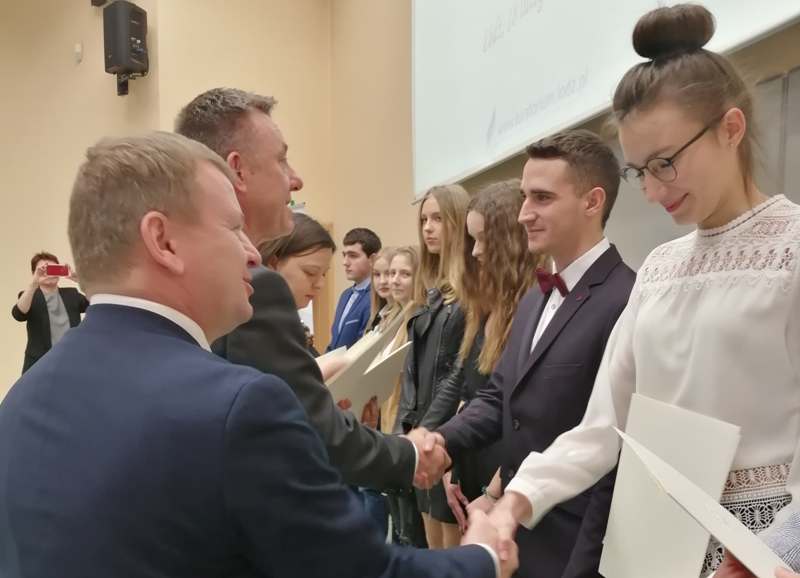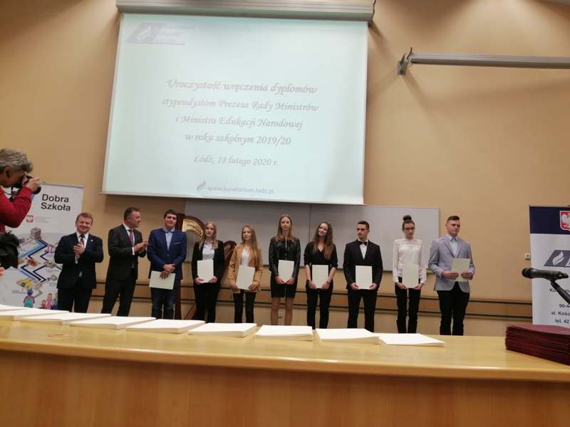 Dnia 18 lutego 2020 w Auli im. W. Szuberta Uniwersytetu Łódzkiego odbyło się uroczyste wręczenie dyplomów stypendystom Prezesa Rady Ministrów z całego województwa łódzkiego. Z naszej szkoły dostał je Cyprian Łuczak -uczeń z klasy IV Technikum Rolniczego, a dyplom wręczył mu Łódzki Kurator Oświaty - Pan Grzegorz Wierzchowski. Warto dodać, że Cyprian otrzymał stypendium za średnią ocen 5,12 w ubiegłym roku szkolnym, co wyróżniło go wśród 230 uczniów z całego województwa.