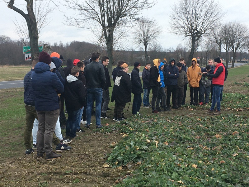 Młodzież zapoznała się także z zasadami funkcjonowania firmy, prowadzenia gospodarki magazynowej oraz wpływu czynników ekonomicznych na podejmowane decyzje dotyczące funkcjonowania i rozwoju zakładu.Ostatnim etapem wycieczki był pokaz polowy. Uczniowie mogli na nim porównać jak wyglądają wschody roślin wysianych trzema metodami: tradycyjną, uproszczoną i najnowszą – pasową.