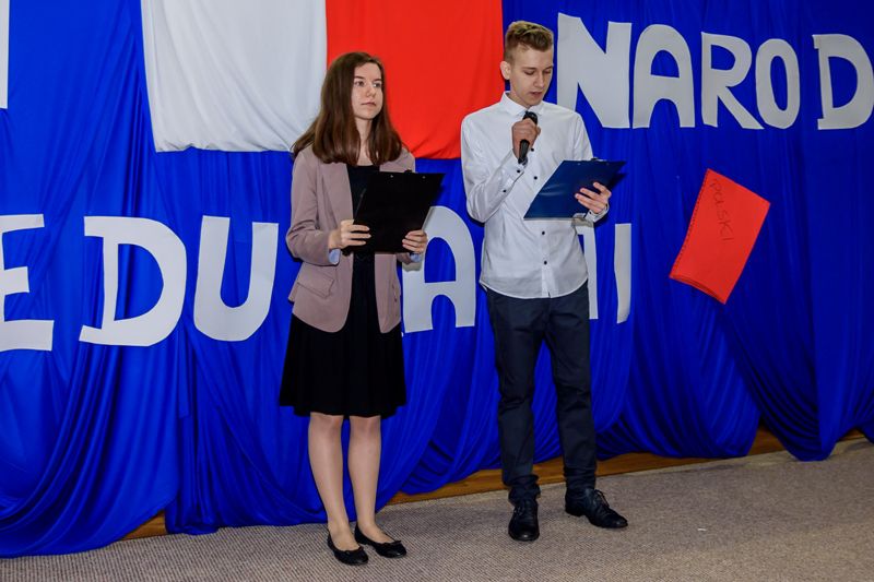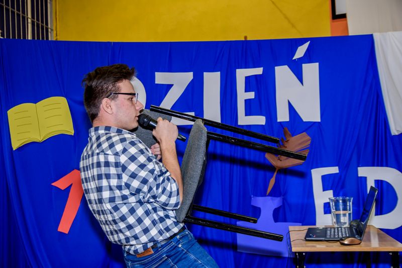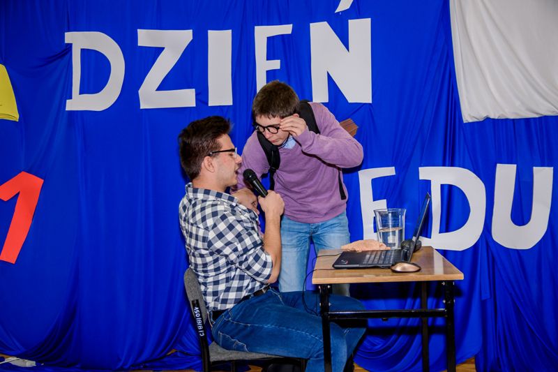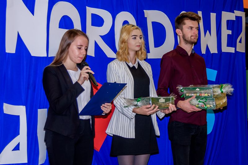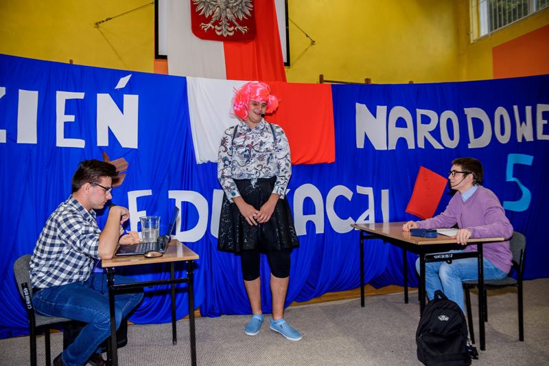 Po wręczeniu nagród, uczniowie prowadzący uroczystość przybliżyli krótko genezę święta Dnia Edukacji Narodowej, jego znaczenie. Ale, żeby podniosła atmosfera nie wpłynęła źle na skupienie uwagi słuchaczy na dłużej, prowadzący zaprosili widownię na krótki skecz, żartobliwie nawiązujący do tematu edukacji narodowej. Uczniowie wcielili się w role nauczyciela i dwojga „przypadkowych” uczniów na lekcjach.