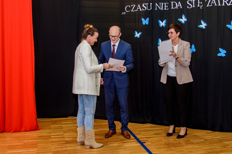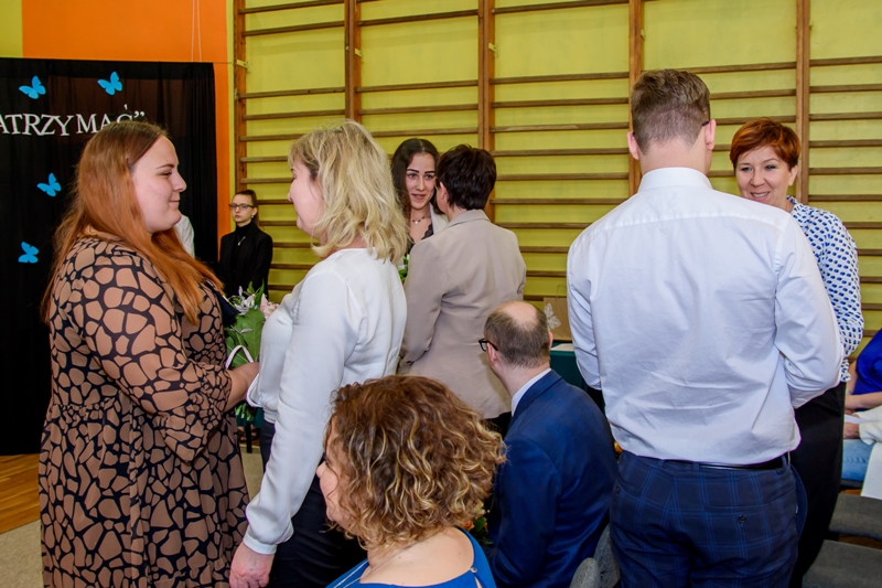 Rangę akademii podkreślała obecność sztandaru szkolnego i zachowanie ceremoniału. Po odśpiewaniu hymnu narodowego otwarcia uroczystości dokonała Pani Dyrektor Beata Jachurska, która serdecznie przywitała wszystkich zebranych z uwzględnieniem zaproszonych gości: Burmistrza Strykowa- Pana Witolda Kosmowskiego oraz Zastępcę Burmistrza Strykowa- Panią Tamarę Barańską- Kiemaczyńską. W swoim przemówieniu Pani Dyrektor podziękowała maturzystom za wieloletnią pracę na rzecz szkoły a także podkreśliła fakt, jak wiele działań musiał podjąć każdy z nich, aby dojść do celu, jakim niewątpliwie jest otrzymanie świadectwa ukończenia szkoły. Życząc absolwentom sukcesów zarówno w życiu osobistym, jak i zawodowym Pani Dyrektor razem z Panem Burmistrzem wręczyli maturzystom nagrody wraz z pamiątkowymi dyplomami za wyniki w nauce oraz za zaangażowanie i pracę na rzecz szkoły. Korzystając z tej wyjątkowej okazji, zostały również przyznane Stypendia Prezesa Rady Ministrów uczniom, którzy uzyskali najwyższą średnią ocen w szkole; uhonorowanymi zostali zatem najzdolniejsi: Adam Trojan (uczeń klasy IV Technikum Logistycznego), Alicja Piątkowska (uczennica klasy III Technikum Żywienia i Usług Gastronomicznych) oraz Wiktoria Urbańska (uczennica klasy II Liceum Ogólnokształcącego).
