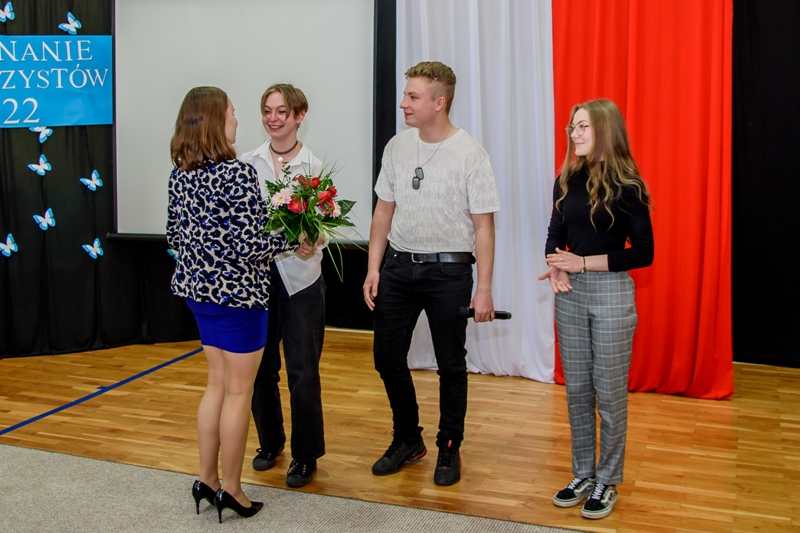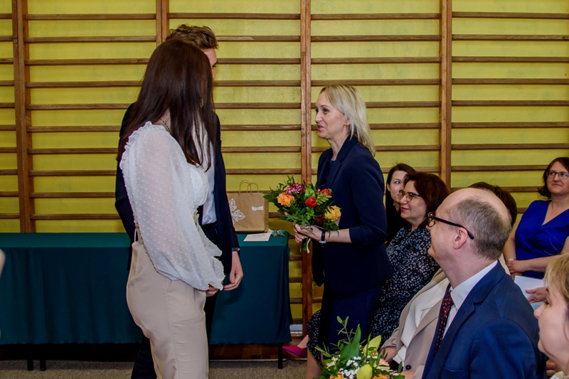 Miłym akcentem części oficjalnej akademii było wystąpienie przedstawicieli uczniów klas maturalnych, którzy w swoich przemówieniach przyznali, że w ciągu ostatnich lat zdarzały się różne chwile: były sukcesy- te małe i te wielkie, były też problemy, a nawet wagary, bo „coś z szaleństwa jest w młodości”; dziś jednak kończąc szkołę, pozostają wdzięczni nauczycielom i wychowawcom za to, że wpajali im prostą prawdę: „Nie uczymy się dla szkoły, lecz dla życia”. Młodzież dziękowała za chwile wsparcia, podtrzymania na duchu, a przede wszystkim za nieustającą mobilizację do pracy. Słowom wdzięczności nie było końca, a zewnętrznym wyrazem tego, co czuło serce, stały się kwiaty wręczone przez absolwentów dyrekcji szkoły, wychowawcom i nauczycielom.