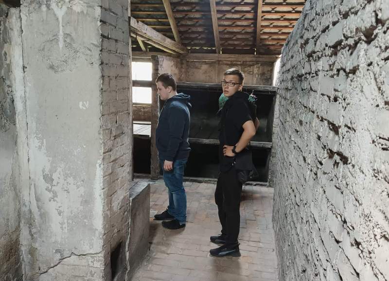Studyjne zwiedzanie Muzeum uczniowie rozpoczęli od przejścia przez słynną bramę obozu macierzystego z napisem Arbeit macht frei a następnie, zwiedzając obozowe baraki, obejrzeli znajdujące się w nich wystawy tematyczne. W każdym z bloków poznali część historii kacetu- dowiedzieli się o jego powstaniu i organizacji, o warunkach egzystencji więźniów, codziennej wyniszczającej pracy a także gehennie ofiar pseudomedycznych eksperymentów; jednym słowem poszerzyli wiedzę dotyczącą rutynowej codziennej rzeczywistości, która była zamierzonym narzędziem upodlenia i eksterminacji milionów niewinnych istnień. Pod ścianą śmierci, zlokalizowaną między blokiem 10 a 11, gdzie odbywały się przesłuchania i gdzie torturowano więźniów, młodzież oddała chwilą ciszy hołd tysiącom pomordowanym ofiar. Zwiedzający zobaczyli również komory gazowe i krematoria; widok ścian, na których można było dostrzec ślady po paznokciach, pozwolił uzmysłowić sobie ogrom niewyobrażalnego dramatu ludzi, którzy w panice szukali ucieczki od palącego, trującego gazu. Widok ten niewątpliwie uświadomił ogrom i skalę dokonanego ludobójstwa w tym największym nazistowskim obozie śmierci.