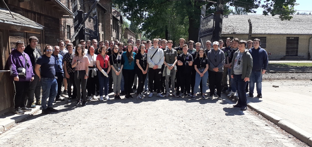 3 czerwca br. uczniowie klas II LO, I TA, II TL, IITA, II IŻ i III TŻ wybrali się do Oświęcimia do zespołu niemieckich obozów koncentracyjnych. KL Auschwitz - Birkenau to jeden z czterech hitlerowskich obozów zagłady, założonych na okupowanych ziemiach polskich; jednocześnie to największy nazistowski obóz- miejsce stopniowego wyniszczania więźniów i równocześnie ośrodek natychmiastowej, bezpośredniej zagłady Żydów.