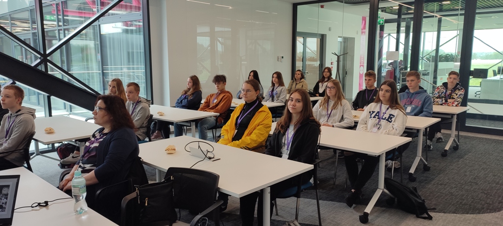 Młodzież klas: I L , II L oraz III pL rozpoczęła zwiedzanie firmy od prelekcji przygotowanej przez Panią Martę Płużyńską, która tytułem wstępu opowiedziała historię firmy jak również w dalszej części wykładu przedstawiła zakres jej funkcjonowania. Podczas oglądania magazynu uczniowie zapoznali się z poszczególnymi etapami procesu technologicznego, którego zwieńczeniem stanowi moment dostarczenia produktu do klienta, jak również zobaczyli działanie oprogramowania informatycznego SAP, które pozwala na usystematyzowanie pracy magazynu.