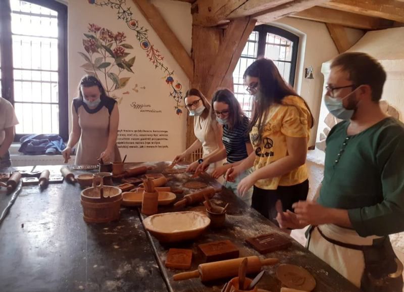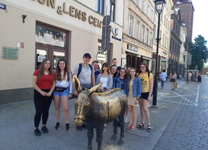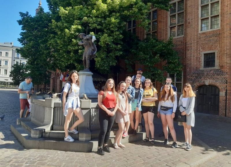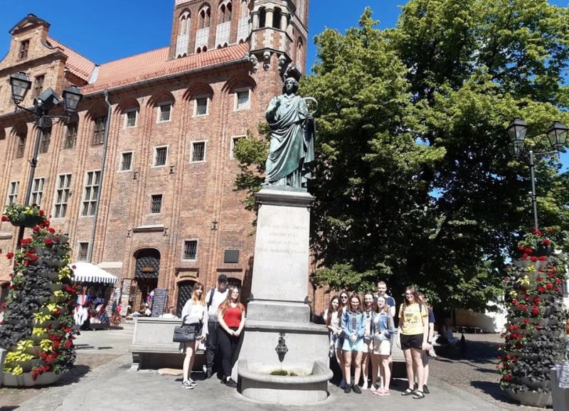 W dniu 9 czerwca 2021r uczniowie klasy II Technikum Żywienia i Usług Gastronomicznych uczestniczyli w wycieczce do Torunia. Przygoda rozpoczęła się z samego rana w środę; po dwugodzinnej podróży młodzież wraz z opiekunami: p. Ewą Piszczyńską oraz p. Anetą Wiśniewską dotarła do Torunia. Zwiedzanie rozpoczęło się od Domu Legend Toruńskich. Legendy, które usłyszeliśmy podczas pokazu: O założeniu Torunia przez krzyżaków, O wizycie króla Władysława Jagiełły i jego szpetnej przygodzie, O flisaku i żabiej pladze, O łotrze Szwedku, O dzwonie Tuba Dei, O Krzywej Wieży i grzechu krzyżaka. Tajemnicze otoczenie i rekwizyty, których można dotknąć i wypróbować; integracja, śmiech, scenki z naszym udziałem; emocjonująca walka na tratwach, poruszanie prawdziwym dzwonem, budowa Krzywej Wieży; historie królów, rycerzy i złoczyńców podane w przystępny sposób… To wszystko sprawiło, że legendy stały się żywe i namacalne. Zaraz po wizycie w Domu Legend Toruńskich udaliśmy się do Manufaktury Cukierków na warsztaty z kręcenia lizaków. Dzięki nim mogliśmy sami przekonać się, ile radości może przynieść praca karmelarza; samodzielnie stworzyliśmy własne lizaki. Kolejnym punktem wycieczki było zwiedzanie najważniejszych miejsc Starego Miasta (Ratusz Staromiejski, Pomnik Mikołaja Kopernika, Katedrę, Fontannę Flisaka, Pręgież, Krzywą Wieżę, Kamiennicę pod Gwiazdą i wiele innych). Mogliśmy również poznać tradycję wypieku toruńskiego piernika odwiedzając Toruńskie Żywe Muzeum Piernika. Pierwsze piętro w magiczny sposób przeniosło nas do średniowiecza, w którym – pod okiem Mistrza Piernikarskiego i uczonej Wiedźmy Korzennej - poznaliśmy wszelkie rytuały związane z wypiekiem piernika. Własnoręcznie przygotowaliśmy ciasto, by później, przy użyciu drewnianych form, wypiec z niego toruńskie specjały. Drugie piętro Muzeum przedstawia manufakturę z przełomu XIX/XX wieku, którą zarządza rodzeństwo Rabiańskich. Zobaczyliśmy tam m.in. oryginalne niemieckie maszyny służące do wypieku piernika, zabytkowy piec oraz kolekcję woskowych form. Następnie cała grupa udała się na obiad do restauracji po kuchennych rewolucjach Magdy Gessler „La Nonna Siciliana”. Odwiedziliśmy również centrum popularyzacji Kosmosu, czyli Toruńskie Planetarium. Seans „Poza horyzontem" dostarczył nam wielu ciekawych informacji o kosmosie, gwiazdach i upływającym czasie. Następnie udaliśmy się w drogę powrotną do domu, robiąc postój w Ciechocinku. Tutaj mogliśmy zobaczyć największą atrakcję- tężnie- unikatową i największą w Europie konstrukcję drewnianą do odparowywania wody z solanki. Po spacerze wokół tężni, z zapasem jodu wróciliśmy do Bratoszewic.