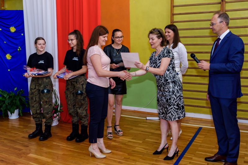 Uroczystość zakończenia roku szkolnego 2020/2021 miała szczególny charakter ze względu na pożegnanie dyrektora, Pani Magdaleny Mackiewicz. Pan Witold Kosmowski Burmistrz Strykowa oraz zastępca Burmistrza Pani Tamara Barańska-Kiemaczyńska podziękowali Pani Dyrektor za wieloletnią i zaangażowaną pracę na stanowisku szefa placówki. Burmistrz Strykowa pełnienie obowiązków dyrektora ZS Nr 1 w Bratoszewicach powierzył na okres 1 roku Pani Beacie Jachurskiej, wicedyrektorowi Szkoły.