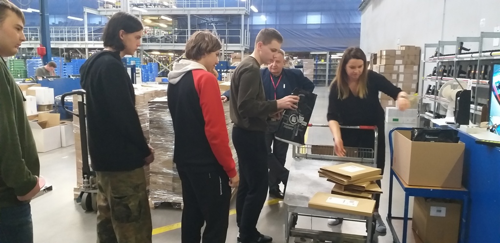 Informacji o charakterze i pełnym zakresie usług firmy udzielił kierownik magazynu, który oprowadzając młodzież, opowiadał z pasją o miejscu powierzonemu jego pieczy. Uczniowie mogli zobaczyć jak również uczestniczyć w pełnym procesie magazynowym, między innymi w zakresie przyjęć i wysyłek, kompletacji, pakowania, etykietowania oraz wysyłania książek. Własnoręcznie skompletowane i zapakowane zamówienia, których zawartością okazały się zupełnie niespodziewane podręczniki do logistyki, stały się prezentem dla naszej młodzieży. Na zakończenie spotkania Pan kierownik wręczył wszystkim drobne upominki, dodatkowo zachęcając do podjęcia współpracy. Tuż po powrocie do szkoły uczniowie dzielili się przemyśleniami i wiedzą, które zdobyli podczas wycieczki zawodowej. Przyznali jednogłośnie, że wycieczka obejmowała szeroki wachlarz wiedzy z przedmiotów logistycznych, a ponadto była ciekawą formą nauki, źródłem obserwacji i doświadczeń.