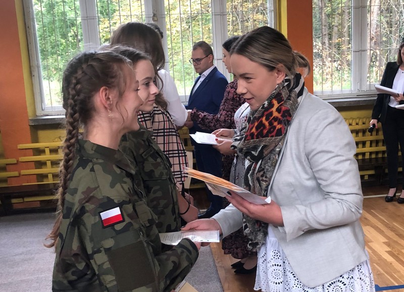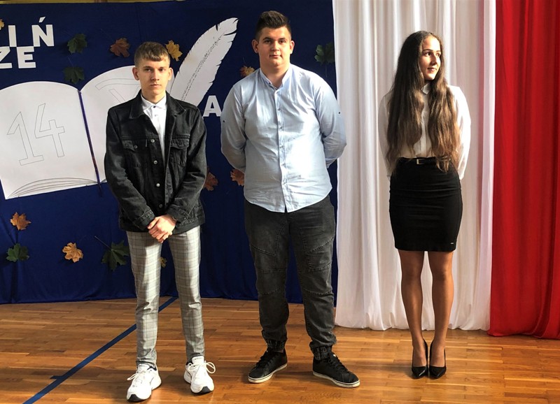 W części oficjalnej uroczystości odbyło się również ślubowanie młodzieży klas pierwszych: Liceum Ogólnokształcącego, Technikum Żywienia i Usług Gastronomicznych, Technikum Informatycznego, Technikum Logistycznego oraz Technikum Agrotronicznego. Podczas ceremonii uczniowie, pod kierunkiem pana Andrzeja Pożarlika, złożyli przysięgę godnego reprezentowania imienia szkoły oraz dbania o jej tradycje i zwyczaje. W dalszej części apelu przedstawiciele Samorządu Uczniowskiego złożyli w imieniu całej społeczności szkolnej podziękowania oraz serdeczne życzenia dla Pani Dyrektor Beaty Jachurskiej, dla Pani Wicedyrektor Elżbiety Czesny, dla Kierownika Kształcenia Praktycznego p. Ewy Piszczyńskiej oraz wszystkich wychowawców, nauczycieli oraz pracowników szkoły.