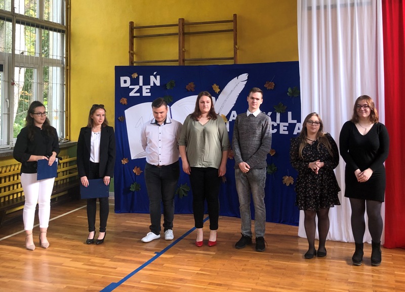 W środę 13 października br. w naszej szkole odbył się uroczysty apel z okazji Święta Edukacji Narodowej. Podczas akademii Pani Dyrektor Beata Jachurska przypomniała zgromadzonym, że dzień ten jest wyjątkowym świętem dedykowanym nauczycielom, wychowawcom, jak i wszystkim pracownikom oświaty- ludziom, którzy kształtując umysły dzieci i młodzieży, ich umiejętności a także wiedzę i zainteresowania, tworzą przyszłość naszej Ojczyzny. Podkreślając jak ważna jest misja nauczania i wychowania współczesnych pokoleń, Pani Dyrektor w słowach uznania, podziękowała za trud i poświęcenie włożone w wykonywaną pracę, jednocześnie życząc wszystkim radości, sukcesów w realizacji trudnych zamierzeń, szacunku i uznania wśród uczniów.