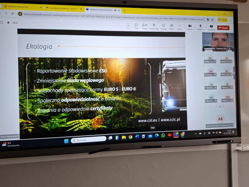 Po raz drugi uczniowie klas 2 i 3 Technikum Logistycznego mieli okazję uczestniczyć w wyjątkowym cyklu lekcji online „Logistyka w praktyce”, zorganizowanym przez Stowarzyszenie Logistyków Polskich. Spotkania te były doskonałą okazją do poznania nowoczesnej logistyki „od kuchni” – w wydaniu praktycznym, opartym na realnych przykładach z funkcjonowania współczesnych przedsiębiorstw. Prelegentami byli doświadczeni praktycy – właściciele firm oraz specjaliści na co dzień zajmujący się logistyką, automatyką magazynową, transportem i systemami informatycznymi. Dzięki temu uczniowie mogli zobaczyć, jak teoria poznawana na lekcjach przekłada się na rzeczywiste procesy zachodzące w magazynach, centrach dystrybucyjnych i łańcuchach dostaw.