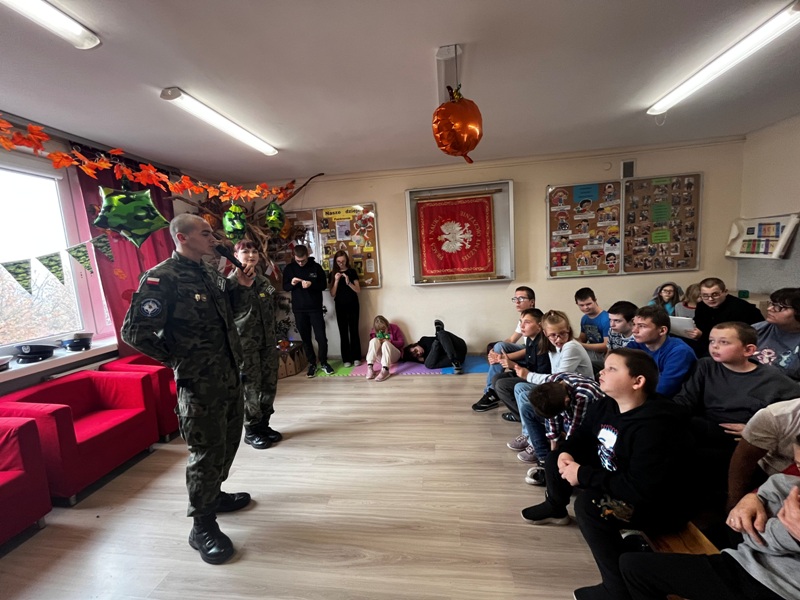 Z okazji Narodowego Święta Niepodległości nasi uczniowie klas mundurowych, należących do Koła Wolontariatu wraz z Panią Karoliną Smurzyńską odwiedzili Zespół Szkół Specjalnych w Głowie, w którym zostały przeprowadzone warsztaty plastyczne. Na miejscu odbyło się także spotkanie z przedstawicielem Pułku Wojska Reprezentacyjnego oraz Przedstawicielkami Wojska Obrony Terytorialnej. Nasza młodzież zaprezentowała musztrę. Wizyta zostanie zapamiętana jako ważna lekcja historii oraz patriotyzmu.