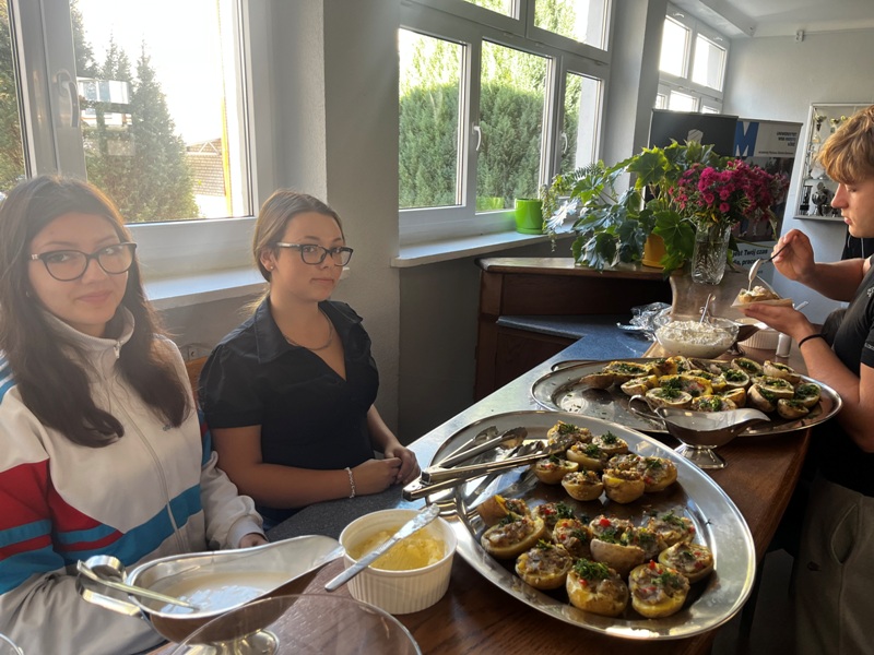 Jesień w naszej szkole przywitaliśmy obchodząc "Dzień Pieczonego Ziemniaka". Zajadaliśmy się przepysznymi, pieczonymi ziemniakami z dipem czosnkowym, koperkowym, masłem czosnkowym oraz gzikiem. Za przygotowanie poczęstunku odpowiedzialne były klasy technikum żywienia wraz z Panią Kierwownik Kształcenia Zawodowego- Ewą Piszczyńską oraz Panią Emilią Kasowską- Gabarą