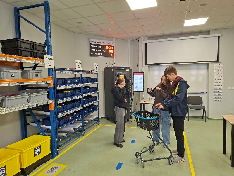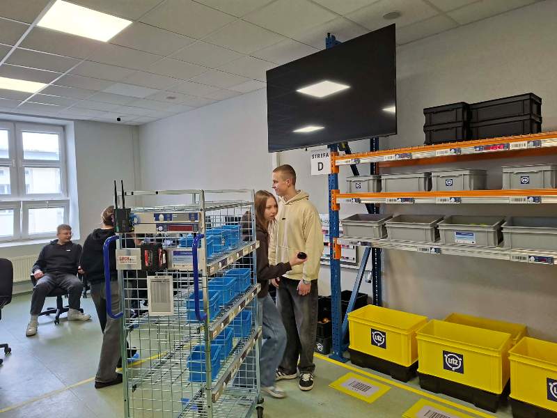 Kolejne dni przyniosły uczniom wiele praktycznych doświadczeń. 17 marca odbyło się spotkanie z przedstawicielami Uniwersytetu WSB Merito w Łodzi. Logistycy uczestniczyli w wykładzie dr Grzegorza Lichocika, który zachęcał ich do świadomego planowania kariery i pokazał, jak codzienne technologie mogą stać się początkiem drogi zawodowej w logistyce. Następnie uczniowie klasy 2 TL mieli okazję wziąć udział w zajęciach praktycznych w pracowni logistycznej uczelni, gdzie poznali nowoczesne systemy kompletacji zamówień, takie jak Pick-by-Light, Pick-by-Point czy Pick-by-Frame. Dużym zainteresowaniem cieszyła się część praktyczna, podczas której młodzież mogła sprawdzić swoje umiejętności w działaniu. Tego samego dnia uczniowie klas: 3 TL oraz 4 TL odwiedzili nowo otwarty magazyn firmy Komfort, gdzie zobaczyli, jak w praktyce funkcjonuje nowoczesne centrum logistyczne – od przyjęcia towaru, przez jego kompletację, aż po wysyłkę. Szczególne wrażenie zrobiła automatyzacja procesów oraz organizacja pracy.