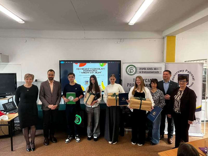 27 marca 2026 r. odbył się finał XI Międzyszkolnego Konkursu „Wiem co jem” pod patronatem Burmistrza Strykowa- Pana Piotra Ślęzaka. Odbył się on w kategorii testu wiadomości i został skierowany do uczniów klas VI- VIII szkół podstawowych. Główny cel konkursu stanowi promocja zdrowia, czyli propagowanie i pogłębianie wiedzy o zdrowym odżywianiu, rozwijanie zainteresowań uczniów tematyką żywienia, a także upowszechnienie wzorców racjonalnego odżywiania.