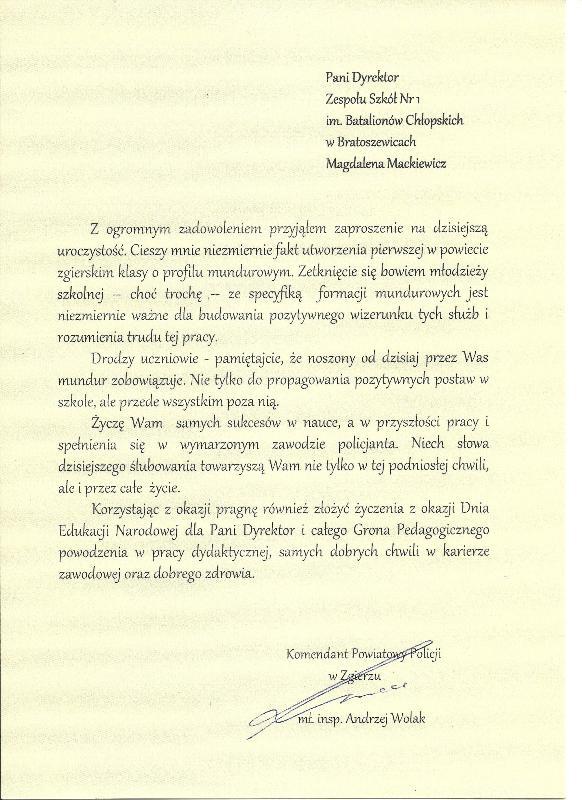 08.09.2015 Porozumienie w sprawie współpracy pomiędzy Komendą Policji a ZS Nr 1