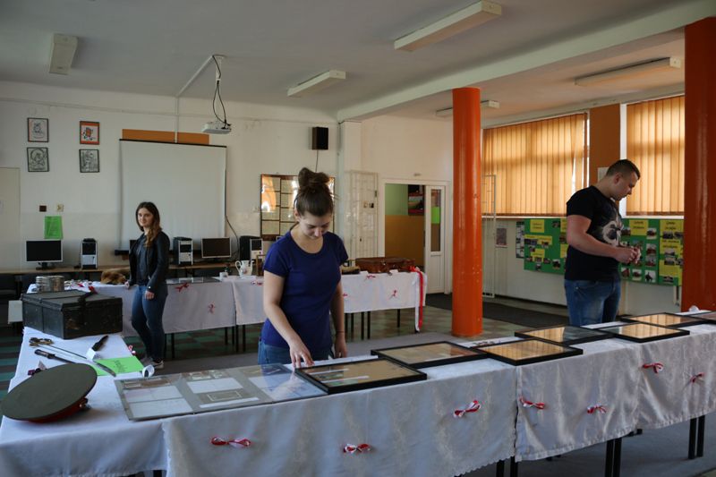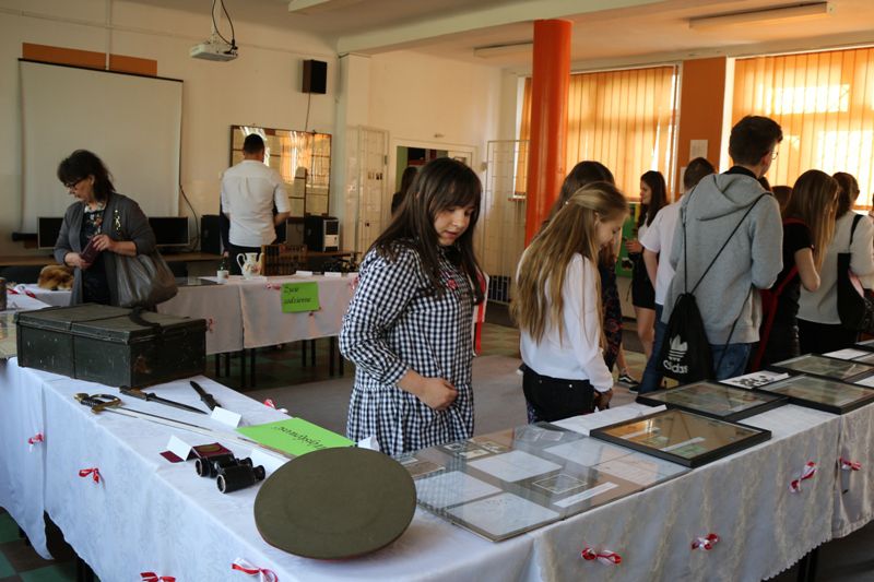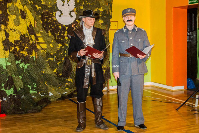 W związku z 100. rocznicą odzyskania przez Polskę niepodległości przedstawiono historię munduru i uzbrojenia na tle dziejów naszej Ojczyzny. Uczniowie pod kierunkiem p. Andrzeja Pożarlika i p. Agaty Pietrzak przy wtórze muzyki z różnych epok historycznych opowiedzieli o tym jak zmieniało się polskie wojsko na przestrzeni dziejów. Konferansjerzy uroczystości – Hubert Ziarnik i Jakub Majcher z dużą precyzją przedstawili historię Polski od 966 r., aż po czasy nam współczesne. Na scenie kolejno pojawiali się: Mieszko I i wój z książęcej drużyny, średniowieczny rycerz, muszkieter, kosynier, woltyżer, legionista, marszałek Piłsudski, żołnierz kampanii wrześniowej i żołnierz służący obecnie w polskim wojskim. Ubarwieniem uroczystości stał się występ Patrycji Mikoś, która jako powstaniec warszawski zaśpiewała Dziewczynę z granatem. Najwięcej emocji wywołał strzał z armaty, który wzbudził ogromne zainteresowanie. Na tym jednak nie koniec. Uczniowie po zakończeniu tej części udali się pod nadzorem pani dyrektor Magdaleny Mackiewicz i pani wicedyrektor Beaty Jachurskiej do stworzonego na potrzeby tego szczególnego dnia schronu, w którym czekał na nich symulowany atak bombowy. Później wszyscy spotkali się na zewnątrz gdzie można było podziwiać bardzo ciekawe pokazy taktyk wojskowych Związku Strzeleckiego „Strzelec” JS 1203 Głowno. Uzupełnieniem tego dnia stała się wystawa pamiątek historycznych połączona z prezentacją polskich naukowców, foto budka, przy której można było zrobić sobie zdjęcie z wybraną postacią z epoki oraz tradycyjnie uroczystość została opatrzona o staropolskie wypieki.