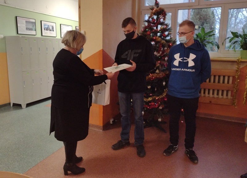 16 grudnia 2021 r. okazał się miłym dniem dla Jakuba Szychowskiego i Krzysztofa Lisiewskiego, uczniów klasy 4 TA, którzy zostali laureatami XIII konkursu wiedzy o bezpieczeństwie pracy w rolnictwie. W konkursie tym, który odbył się w ostatnich dniach października, wzięło udział dziewiętnastu uczniów naszej szkoły i choć poziom był wyrównany, a rywalizacja zacięta to wygrał Jakub Szychowski, wyprzedzając zaledwie o 1 punkt Krzysztofa Lisiewskego. Niestety ze względu na obostrzenia pandemiczne w tym roku konkurs został ograniczony wyłącznie do etapu szkolnego.