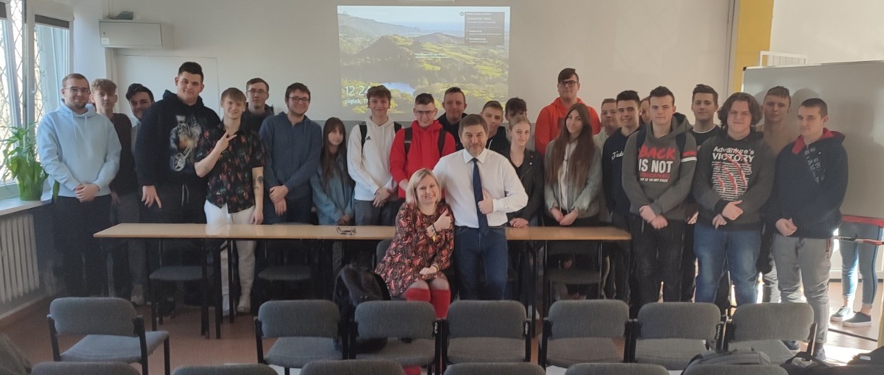 Nasi uczniowie byli zadowoleni ze spotkania, ponieważ zupełnie w innym świetle mogli spojrzeć na zagadnienia związane z logistyką. Pan dr inż. Paweł Morawski i Pani dr Katarzyna Kolasińska Morawska zgodzili się na współpracę z naszą szkołą, w ramach której młodzież będzie miała okazję uczestniczyć w wykładach podejmujących tematykę procesu planowania, realizowania i kontrolowania sprawnego i efektywnego ekonomicznie przepływu surowców, materiałów, wyrobów gotowych oraz odpowiedniej informacji z punktu pochodzenia do punktu konsumpcji w celu zaspokojenia wymagań klientów.