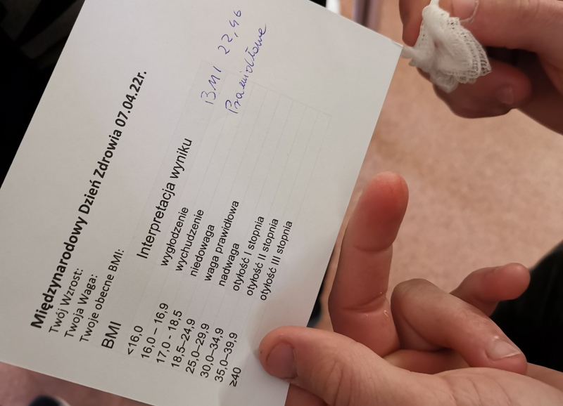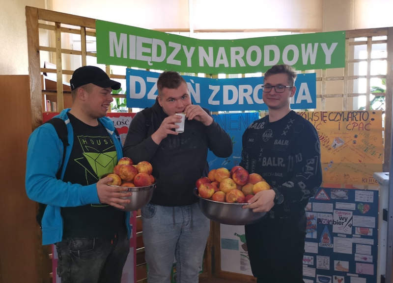 7 kwietnia br. z okazji Międzynarodowego Dnia Zdrowia, którego głównym celem jest zwrócenie szczególnej uwagi na najbardziej istotne problemy zdrowotne społeczeństw na świecie, nasi uczniowie przygotowali w szkolnej kawiarence „stanowiska zdrowia”. Na każdym z nich można było obliczyć swoje BMI, zmierzyć ciśnienie tętnicze a także zbadać poziom glukozy we krwi. Miłym akcentem tego dnia był zdrowy poczęstunek w formie jabłek.
