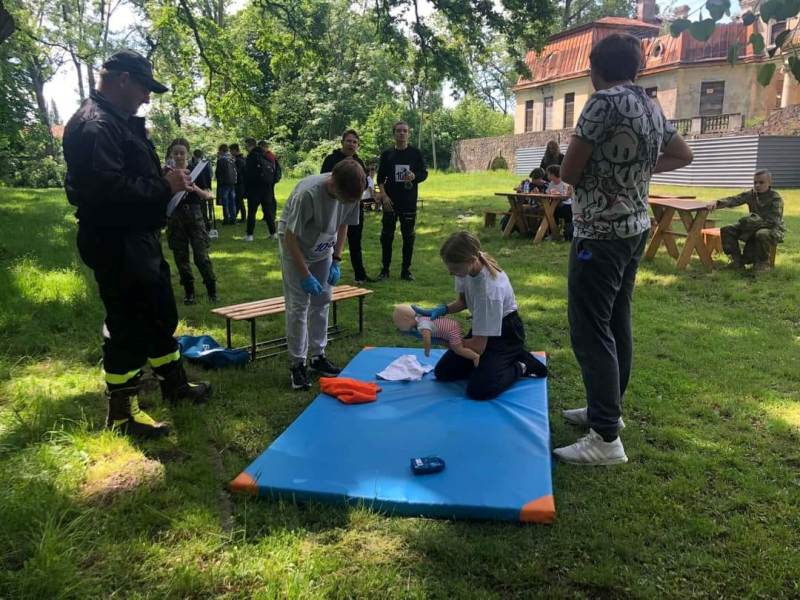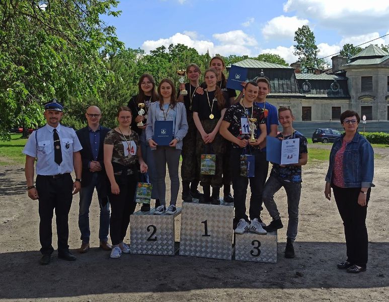 Na starcie trasy, która biegła przez park, pojawiły się również, oprócz naszych uczniów, reprezentacje klas VIII Szkół Podstawowych ze Strykowa, Dobrej, Koźla, Niesułkowa, a także Szczawina i Dąbrówki Wielkiej w Gminie Zgierz i Dąbrówki Dużej w Gminie Brzeziny. Po dotarciu do każdej z siedmiu stacji biegu zawodnicy zmagali się z zadaniami z zakresu pierwszej pomocy i ochrony przeciwpożarowej.