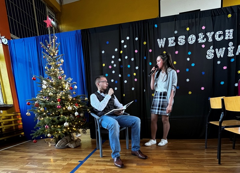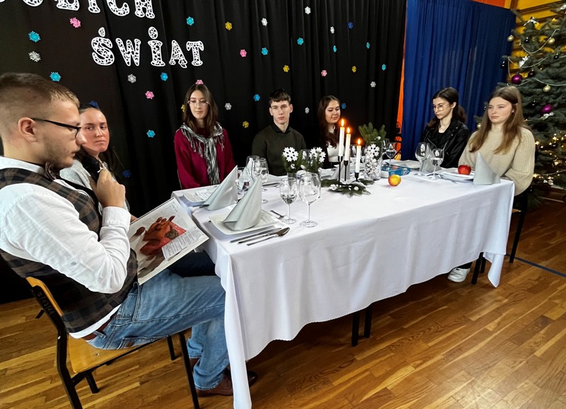 22 grudnia 2023 roku odbyło się uroczyste spotkanie wigilijne społeczności uczniowskiej, nauczycieli i pracowników naszej szkoły. W części oficjalnej akademii Pani Dyrektor Beata Jachurska złożyła wszystkim obecnym życzenia spokojnych i rodzinnych Świąt, aby chwile spędzane przy wigilijnym stole były dla każdego czasem wolnym od trosk i problemów codzienności, a nadchodzący rok 2024 przyniósł radość i spełnienie wyczekiwanych marzeń.