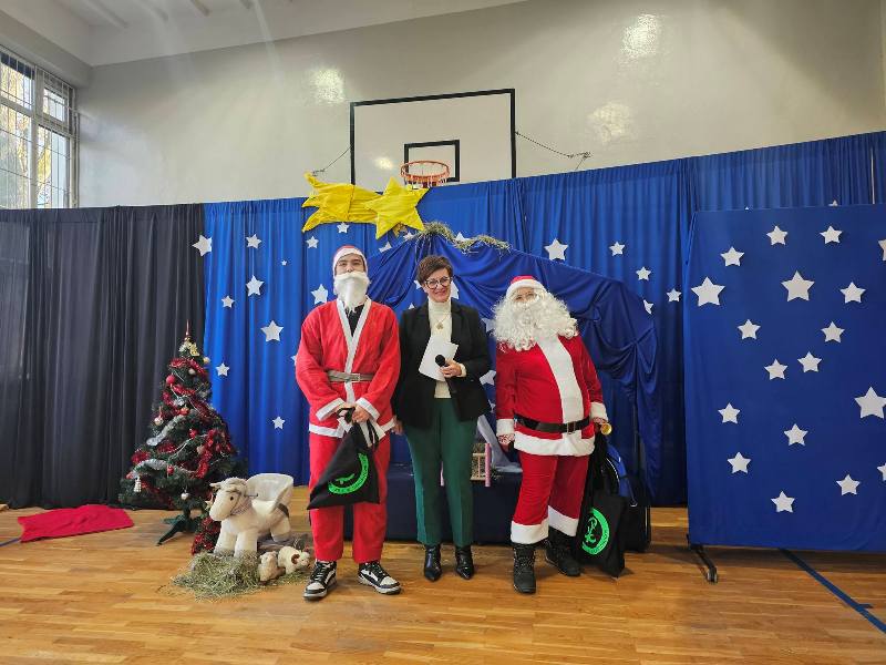 Po zakończeniu przedstawienia Pani Dyrektor Beata Jachurska podzieliła się z uczniami i nauczycielami opłatkiem, składając wszystkim serdeczne życzenia zdrowych, spokojnych i pełnych radości Świąt Bożego Narodzenia. Był to moment wspólnoty, życzliwości i refleksji, który na długo pozostanie w pamięci całej szkolnej społeczności.
