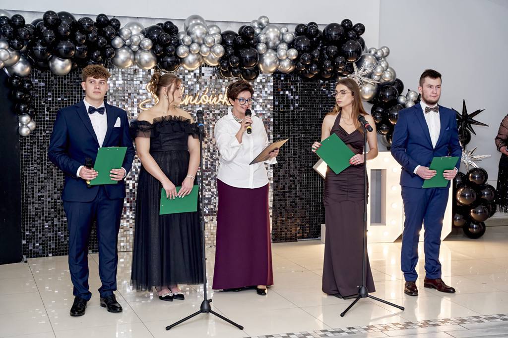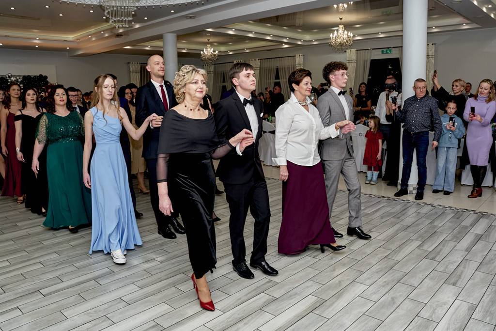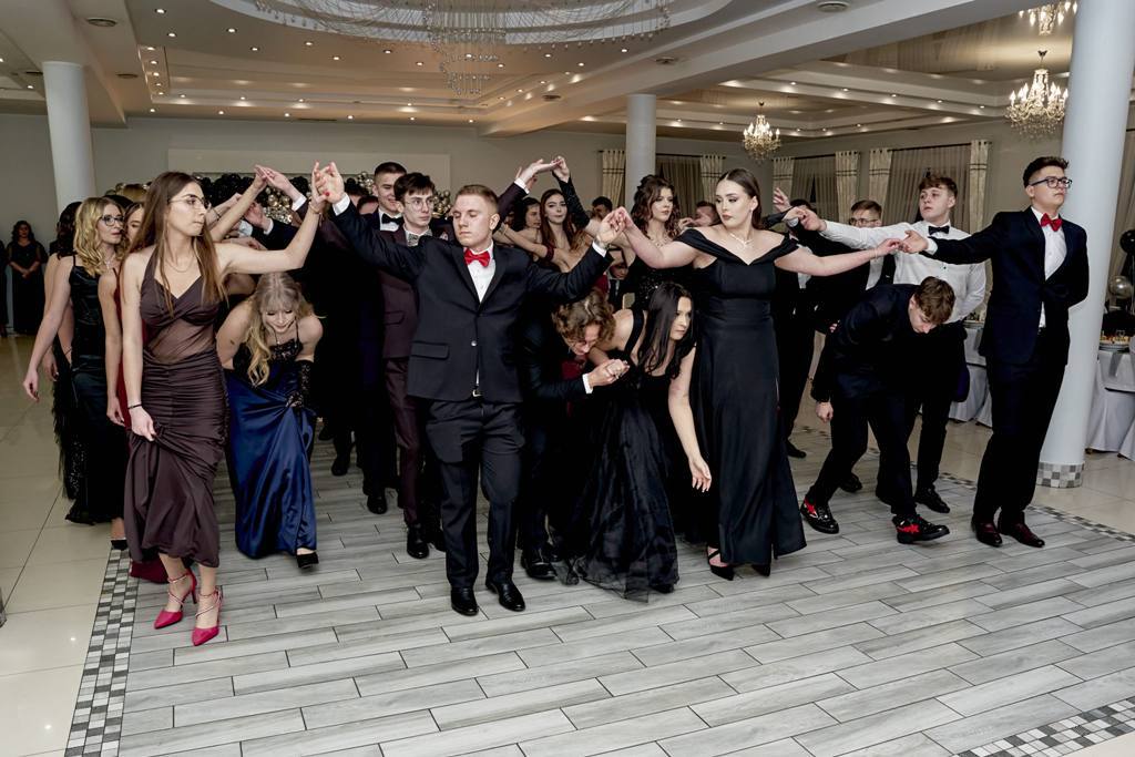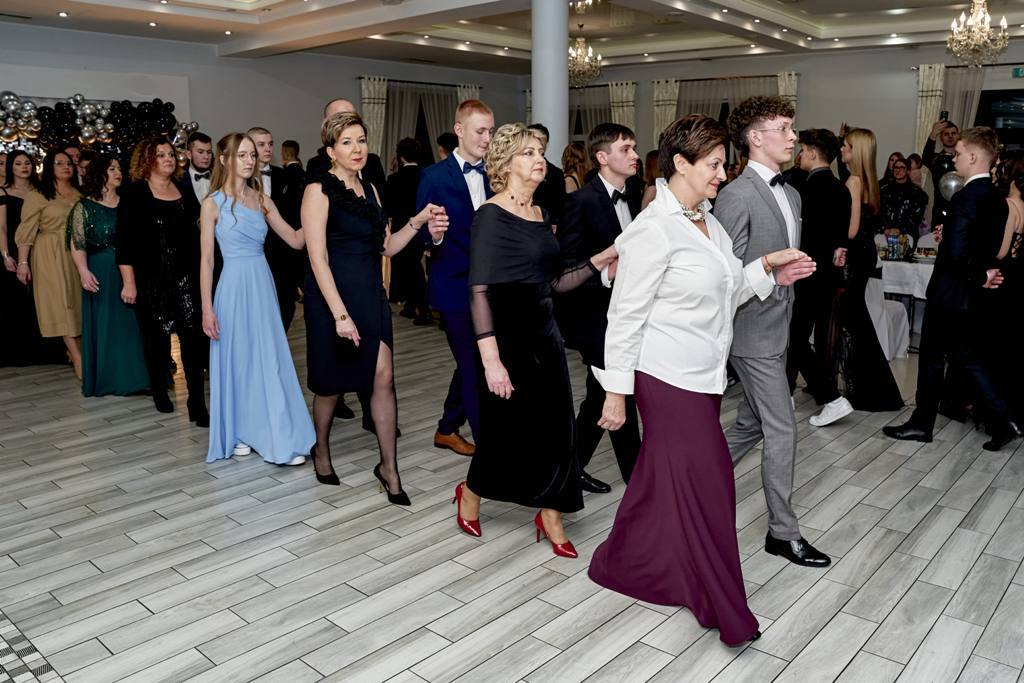 Po zakończeniu poloneza maturzyści skierowali do dyrekcji szkoły, zaproszonych gości, nauczycieli oraz wychowawców wzruszające słowa podziękowania. Wyrażono wdzięczność za lata cierpliwości, wyrozumiałości, przekazaną wiedzę oraz nieocenione wsparcie w chwilach trudnych. Podkreślono również ogromny trud włożony w kształtowanie charakterów, przygotowanie do matury, inspirowanie do rozwoju oraz codzienną opiekę wychowawczą. Następnie rozpoczęła się zabawa taneczna, która trwała do białego rana. Parkiet przez wiele godzin wypełniony był radością, energią i młodzieńczą beztroską. Studniówka stała się nie tylko okazją do wspólnej zabawy i integracji, lecz także symbolicznym pożegnaniem z jednym z najpiękniejszych etapów życia – latami spędzonymi w szkolnych murach.