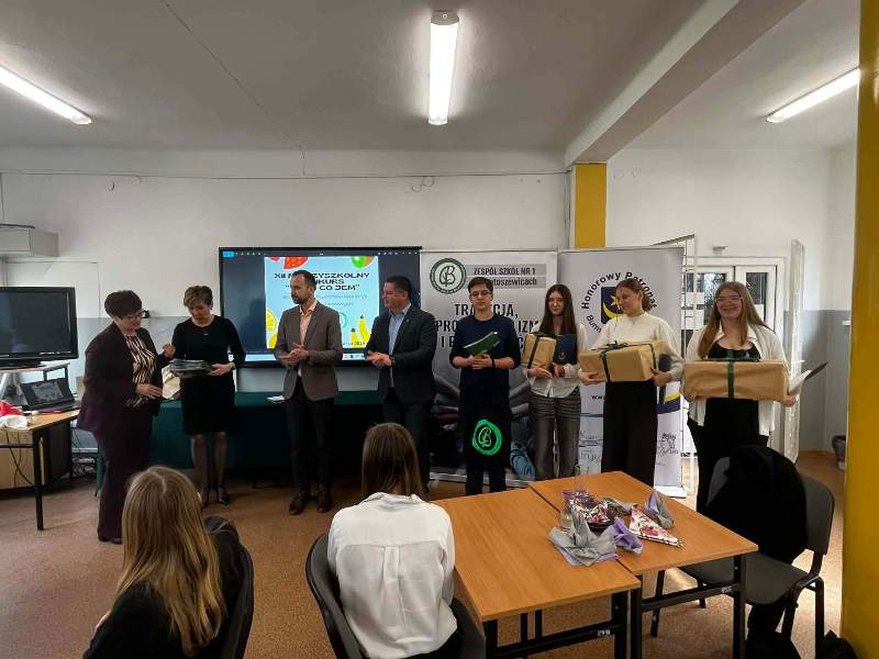 Finałem konkursowych zmagań było oficjalne wręczenie dyplomów i nagród naszym wspaniałym zwycięzcom. Pan Burmistrz Piotr Ślęzak i Zastępca Burmistrza Adam Kaźmierczak wraz z Panią Dyrektor Beatą Jachurską podziękowali uczestnikom konkursu za wzięcie udziału w tak trudnych zmaganiach, a co za tym idzie pogratulowali poziomu wiedzy. Ponadto podziękowali również opiekunom finalistów - nauczycielom przygotowującym młodzież pod względem merytorycznym.