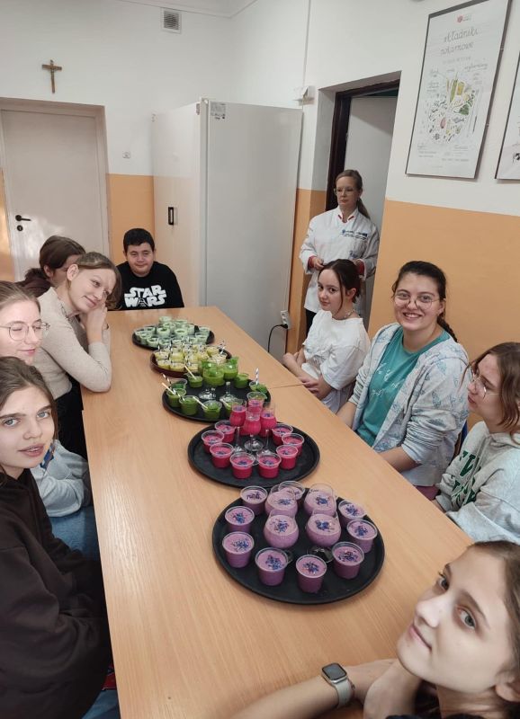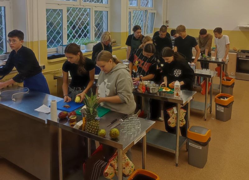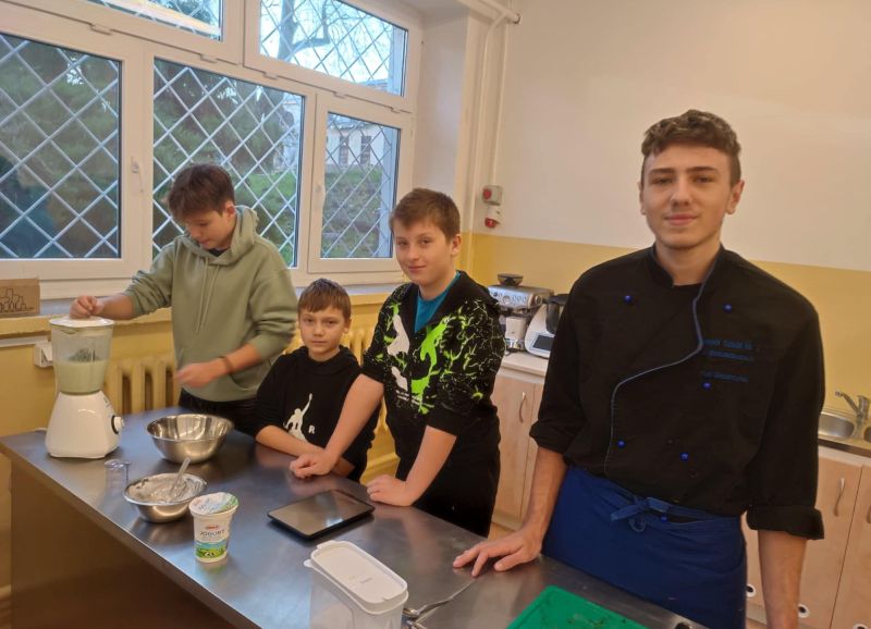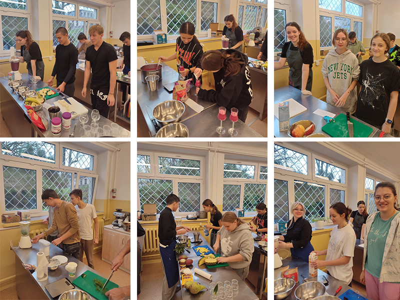 W 19 listopada, w pracowni gastronomicznej, gościliśmy uczniów klas siódmych i ósmych Szkoły Podstawowej w Niesułkowie. Uczniowie mieli możliwość uczestniczyć w zajęciach praktycznych realizowanych przez klasę 3 Technikum Żywienia i Usług Gastronomicznych i sporządzać zdrowe i pożywne koktajle. Praca w kuchni zakończyła się wspólną degustacją sporządzonych napojów.