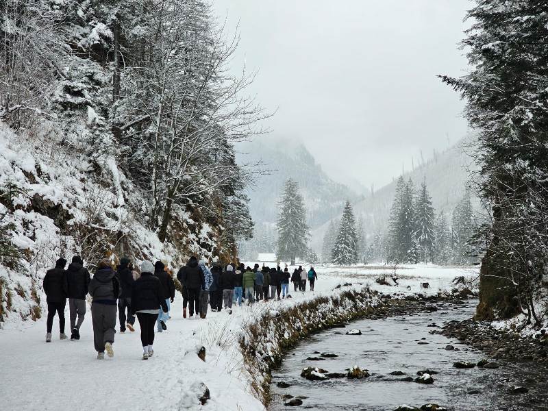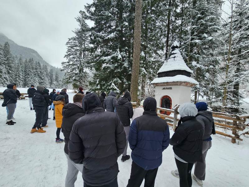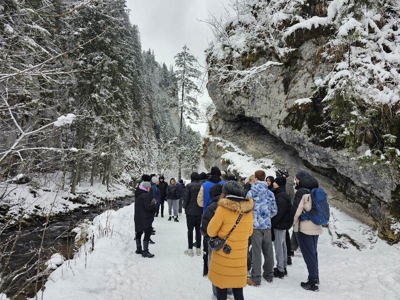 Przygodę z tą niezwykle malowniczą miejscowością, nazywaną zimową stolicą Polski rozpoczęliśmy 4 grudnia. Nasi uczniowie już pierwszego dnia pobytu mogli podziwiać Wielką Krokiew im. Stanisława Marusarza, czyli dużą skocznię narciarską, zlokalizowaną w Zakopanem na północnym stoku góry Krokiew, na wysokości 1050 m n.p.m. Tego samego dnia wybraliśmy się na spacer po Dolinie Kościeliskiej, która zachwyciła uczniów śnieżnobiałą aurą. Był to niezwykle miły odpoczynek w pięknych okolicznościach przyrody. W kolejnym dniu pobytu podziwialiśmy widok z Gubałówki na panoramę Tatr.