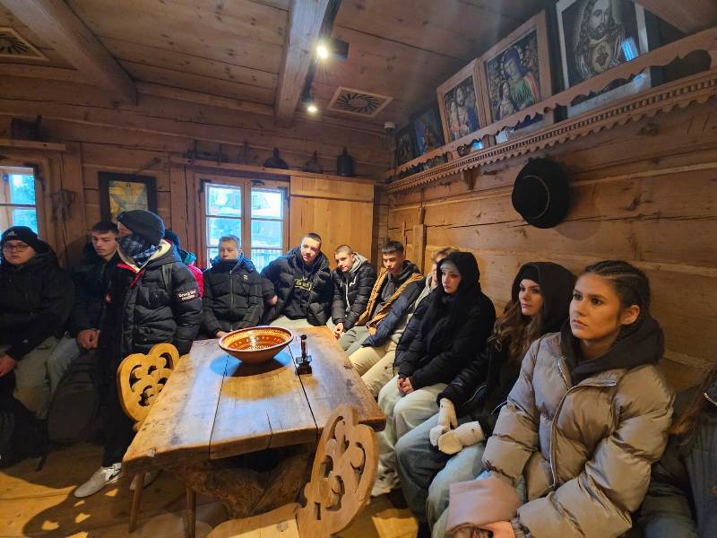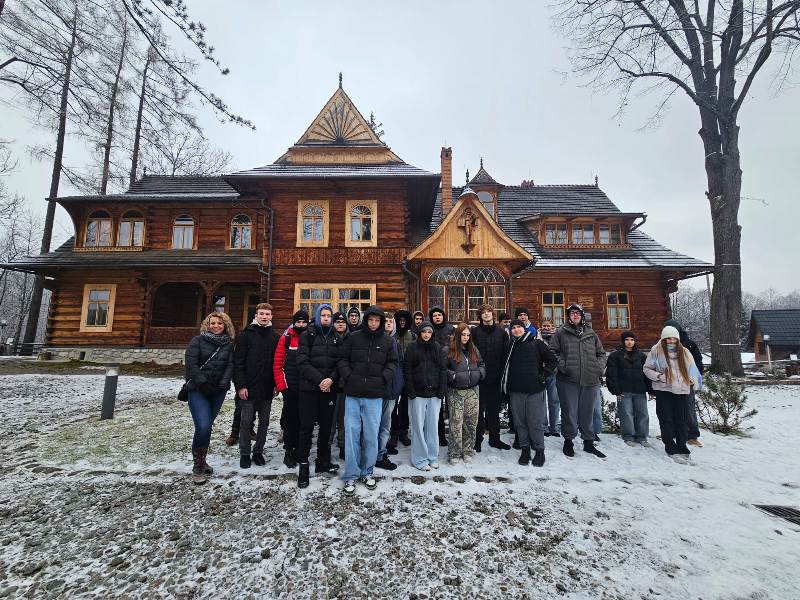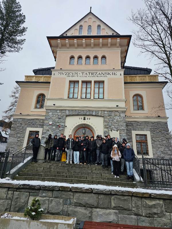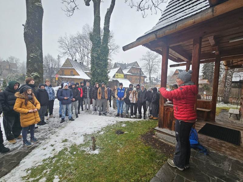 Uczniowie podczas wycieczki dowiedzieli się, że Zakopane to nie tylko piękne szczyty, czy możliwość wędrówek po dolinach i szlakach w Tatrach. Pod koniec XIX wieku Zakopane było określane "kulturalną stolicą" Polski. Funkcjonują tu ważne instytucje kultury. Nasi podopieczni odwiedzili Muzeum Tatrzańskie im. Tytusa Chałubińskiego- najstarsze muzeum regionalne w Polsce. W 1922 roku zostało przeniesione do specjalnie zaprojektowanego budynku, w którym obecnie znajdują się przeróżne kolekcje, począwszy od sztuki ludowej, strojów regionalnych, flory i fauny Tatr, skończywszy na współczesnych wnętrzach domostw najstarszych mieszkańców Podhala. Uczniowie zwiedzili również Muzeum Stylu Zakopiańskiego im. S. Witkiewicza. Miejsce to poświęcone jest Stanisławowi Witkiewiczowi- architektowi, malarzowi, pisarzowi urodzonemu w 1915 r. To dzięki niemu udało się rozpowszechnić styl zakopiański i to właśnie ów człowiek wykonał plan pierwszego budynku we wspomnianym stylu, znany obecnie jako Willa Koliba. W tym przepięknym miejscu funkcjonuje muzeum poświęcone temu artyście. Duże zainteresowanie uczniów wzbudziła Chałupa Gąsieniców Sobczaków – muzeum w niewielkiej, drewnianej chałupie, które zachwyca turystów zbiorami związanymi z podhalańską kulturą. Sam budynek, w którym mieści się to nietuzinkowe muzeum, to idealny przykład architektury zakopiańskiej, nazywanej też witkiewiczowską, bowiem to właśnie wspomniany wcześniej Stanisław Witkiewicz, ojciec słynnego Witkacego, rozpowszechnił ów typ budownictwa.
