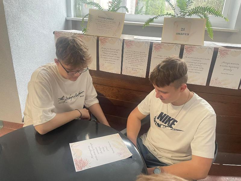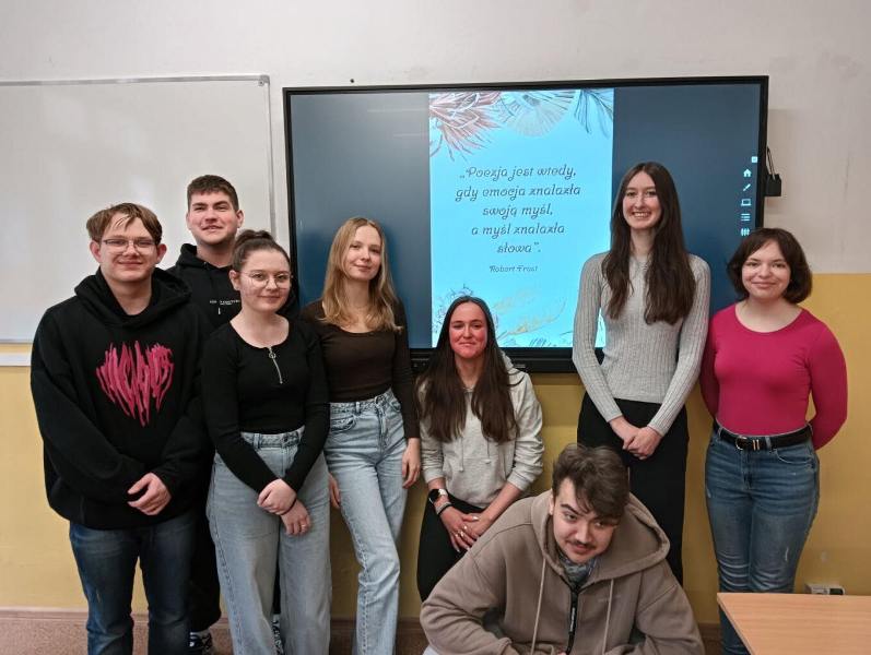 21 marca br. w naszej szkole obchodziliśmy Międzynarodowy Dzień Poezji. Było to wyjątkowe wydarzenie, które miało na celu promowanie piękna poezji oraz rozwijanie wrażliwości artystycznej uczniów. Z tej okazji zorganizowaliśmy wystawkę tematyczną, która prezentowała inspirujące cytaty z wierszy. Ponadto na wybranych lekcjach języka polskiego próbowaliśmy odpowiedzieć na pytanie czym jest poezja i czy każdy może być poetą. Tworzyliśmy jej własną definicję a następnie czytaliśmy wybrane utwory, po czym krótko omawialiśmy ich treść. Wysnuliśmy wniosek, że poezja jest jednym z najstarszych i najbardziej uniwersalnych sposobów wyrażania ludzkich emocji, myśli i doświadczeń. Przyjmując różne formy – od pieśni i ballad po współczesne wiersze wolne, jest czymś więcej niż tylko grą słów – to sztuka, która pozwala uchwycić to, co niewyrażalne, nadając uczuciom i przeżyciom literacką formę. Poezja nie tylko opisuje rzeczywistość, ale także ją interpretuje, dodając jej głębi i nowych znaczeń. Dzięki barwnym epitetom, metaforom i symbolom przenosi ona czytelnika w inny świat, zmuszając do refleksji i odkrywania nowych perspektyw. Często staje się głosem tych, którzy nie potrafią mówić, wyrażając to, co w codziennym języku mogłoby pozostać niewypowiedziane... Jednocześnie poezja jest niezwykle osobista – każdy odbiera ją inaczej, dostrzegając w niej własne emocje i przeżycia. Wiersz może być formą ucieczki od rzeczywistości, sposobem na wyrażenie bólu, radości, nadziei czy tęsknoty...