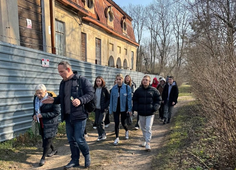 Pierwszym punktem programu było spotkanie z panią Alicją Król-Kamińską – wieloletnią nauczycielką technikum w Bratoszewicach i autorką monografii „Bratoszewice – czasy i ludzie”. Pani Król-Kamińska opowiedziała o historii jednego z najpiękniejszych niegdyś pałaców na ziemi łódzkiej oraz jego dramatycznych losach, naznaczonych zniszczeniem i upływem czasu. Szczególne zainteresowanie wzbudziła opowieść o wizycie Adolfa Hitlera we wrześniu 1939 roku, podczas której w bratoszewickim pałacu dekorował on niemieckich żołnierzy odznaczeniami za walki nad Bzurą.