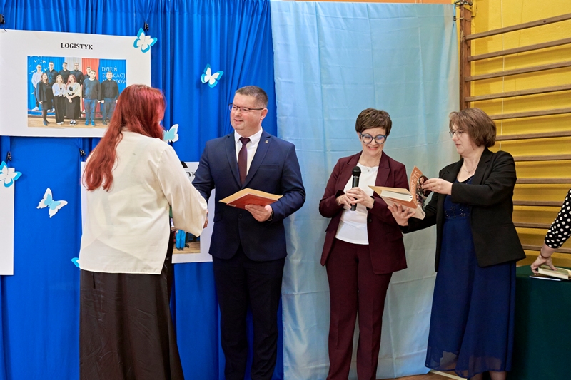 Podczas uroczystości dyrektor szkoły, zastępca burmistrza oraz wychowawcy klas maturalnych wręczyli nagrody uczniom, którzy wyróżniali się wynikami w nauce, zachowaniu oraz godnie reprezentowali szkołę na różnych szczeblach konkursów i zawodów.