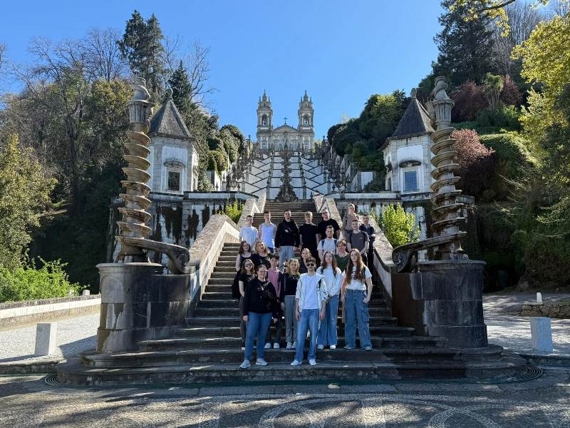 Już pierwszego dnia uczniowie mieli okazję zwiedzić Sanktuarium Bom Jesus w Bradze – jedno z największych cudów architektonicznych Portugalii. Monumentalne schody Bom Jesus oraz zabytkowa winda zrobiły na wszystkich ogromne wrażenie. Odwiedziliśmy również Sanktuarium Matki Bożej w Sameiro – jedno z najważniejszych miejsc pielgrzymkowych w północnej części kraju.