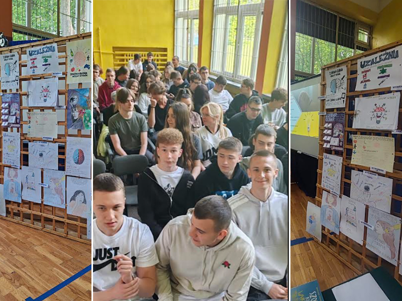 Jednym z centralnych punktów dnia był szkolny konkurs plastyczny. Zadaniem uczniów było przedstawienie, czym dla nich jest zdrowie psychiczne oraz jak zapobiegać różnego rodzaju uzależnieniom. Kreatywność młodzieży nie zawiodła – powstały prace pełne głębokich przemyśleń, emocji i artystycznej ekspresji. Główną nagrodę zdobyła klasa II Technikum Logistycznego, której wychowawcą jest pani Monika Pawlak-Kalinowska. Plakat tej klasy został doceniony za pomysłowość, estetykę i mocny przekaz.