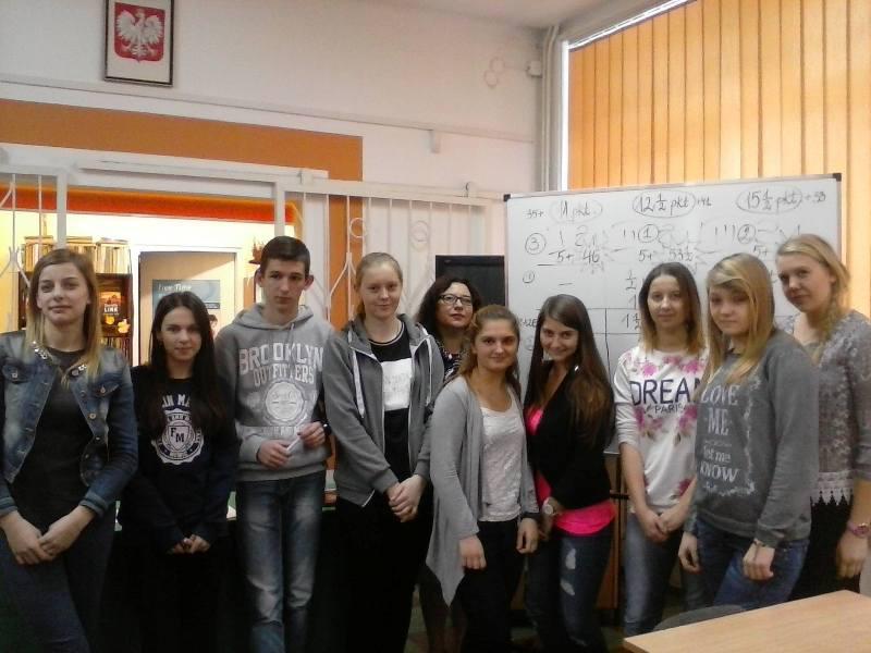 z klasy I LO, Patrycja Plewka i Maja Kwiatkowska z klasy II TŻ, Patrycja Olczak i Klaudia Kapusta z I LO, Daniel Kołodziejski z klasy III TR, Sebastian Kujawiak i Filip Radzicki